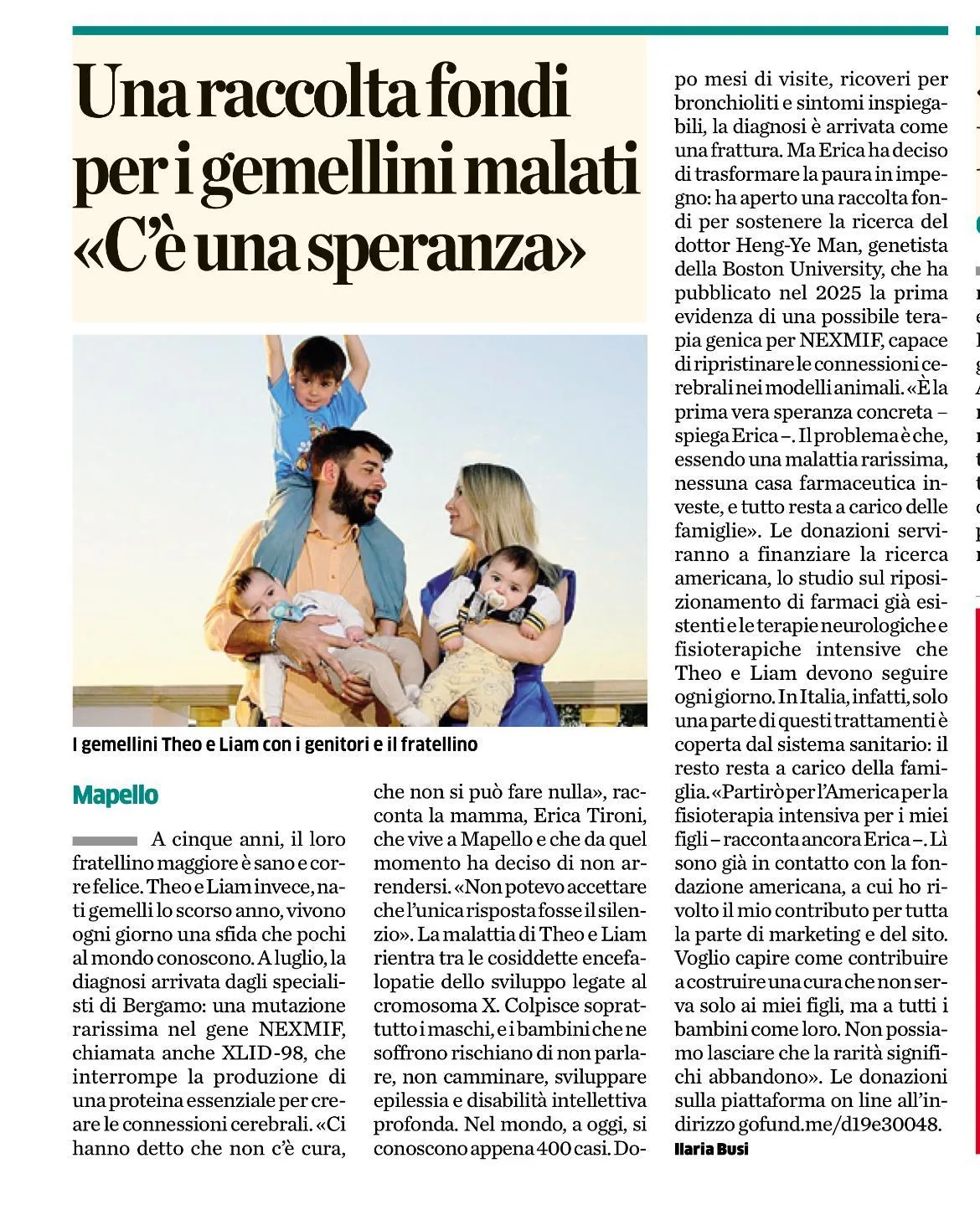 Due gemelli bellissimi, sì. Ma dentro, abbiamo una mutazione genetica rarissima che si chiama NEXMIF/XLID-98.